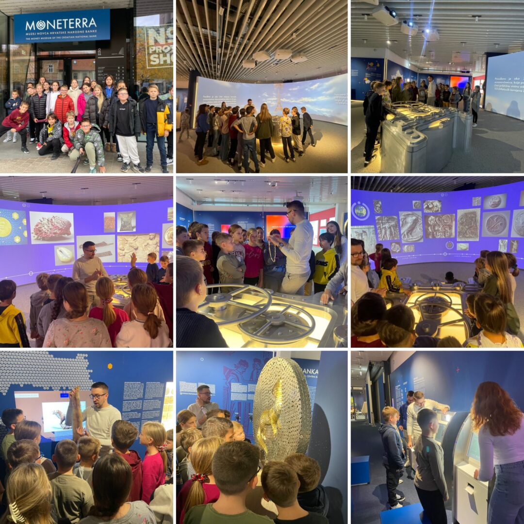 Učenici 4.b i 4.c razreda posjetili su, 30.listopada 2025., Muzej novca – Moneterra u sklopu projekta “Kovanica za budućnost” te Svjetskog dana štednje. Kroz interaktivni postav Muzeja, stručno vodstvo i radionice učenici su upoznali povijest novca, od antičkih kovanica do suvremenih digitalnih valuta te naučili o važnosti financijske pismenosti.